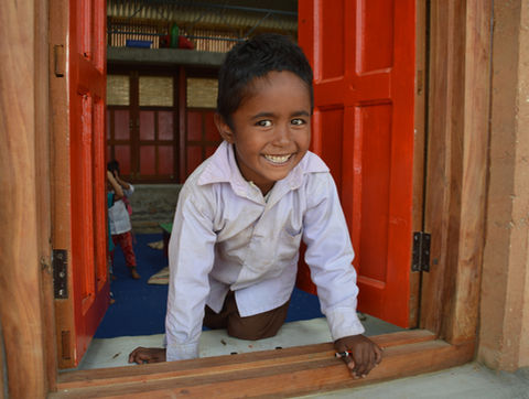 Bindabasini school was damaged during the earthquakes in 2015 when most of the stone spilt out of the walls. The school community saved the teaching spaces by temporarily covering the walls with corrugated iron.